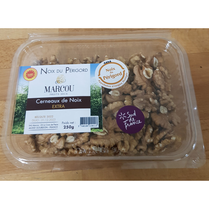 Cerneaux de noix du Périgord invalides, vendus en barquette.