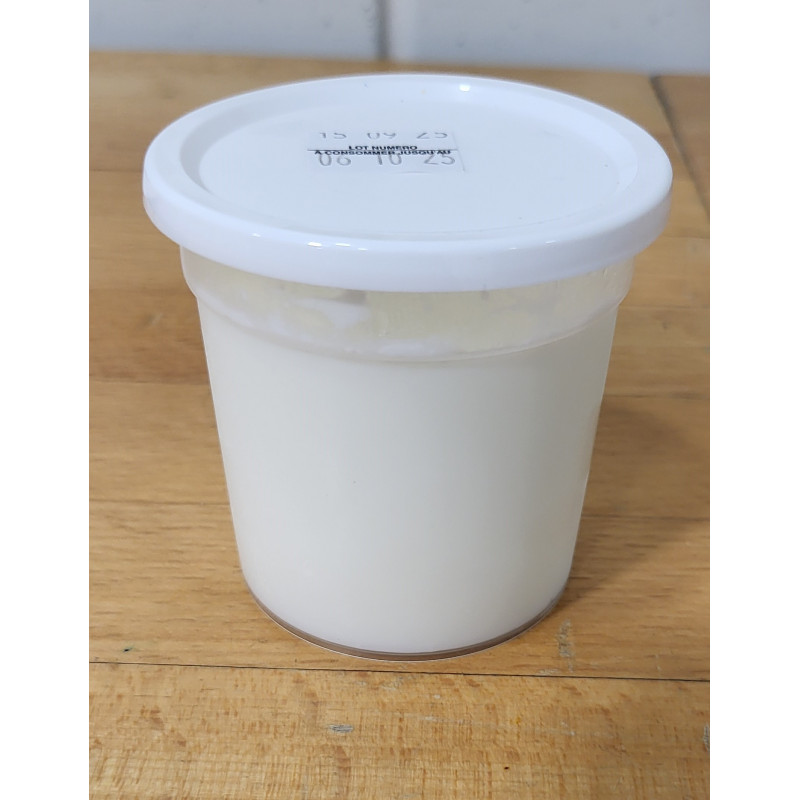 Yaourt nature au lait de chèvre, produit en France, dans le département du Tarn et Garonne, par la fromagerie du Gouyre (82800 Vaïssac).