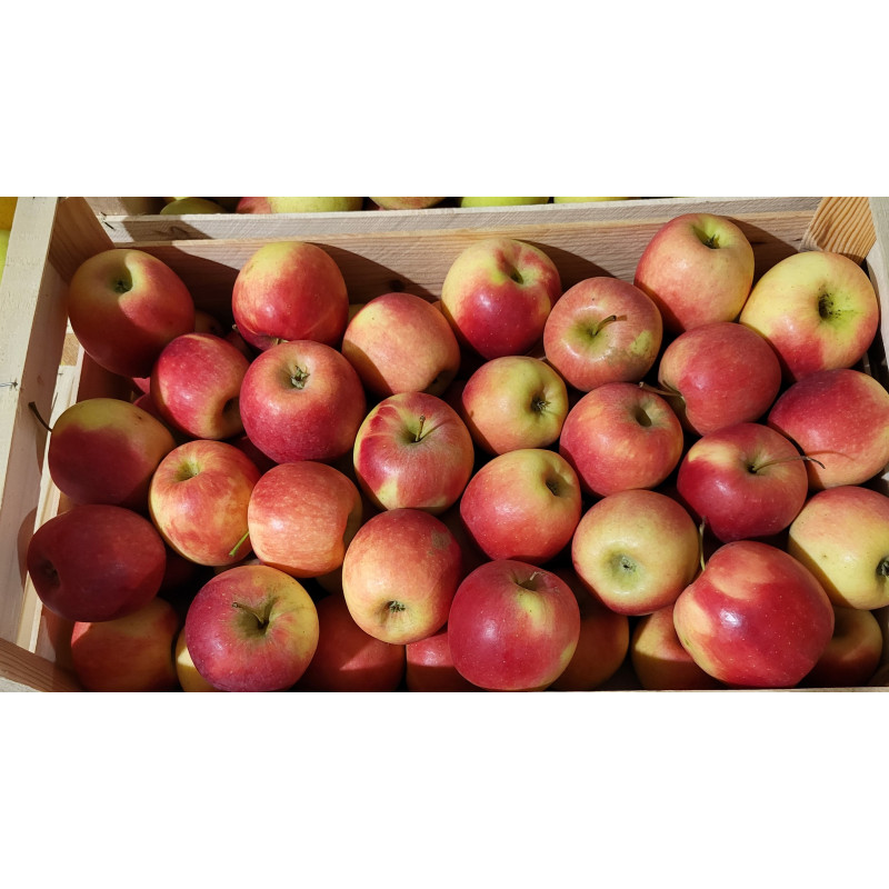 La Fuji est une pomme bien ronde, assez grosse, de couleur rouge sur fond vert :