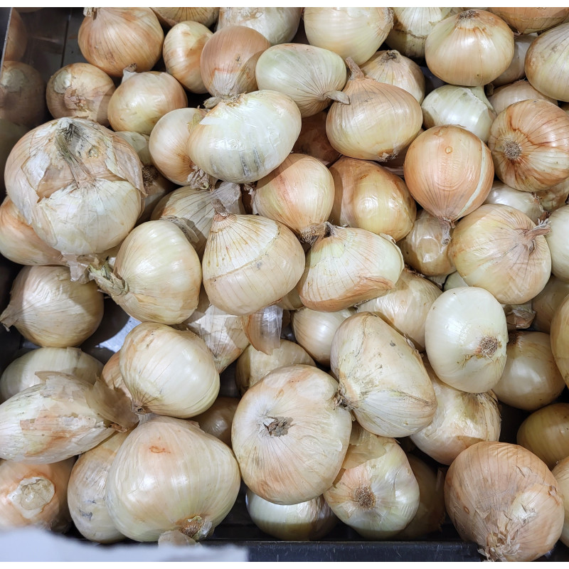 Cet oignon est d'assez gros calibre. Sa peau est blanche avec des teintes cuivrées.